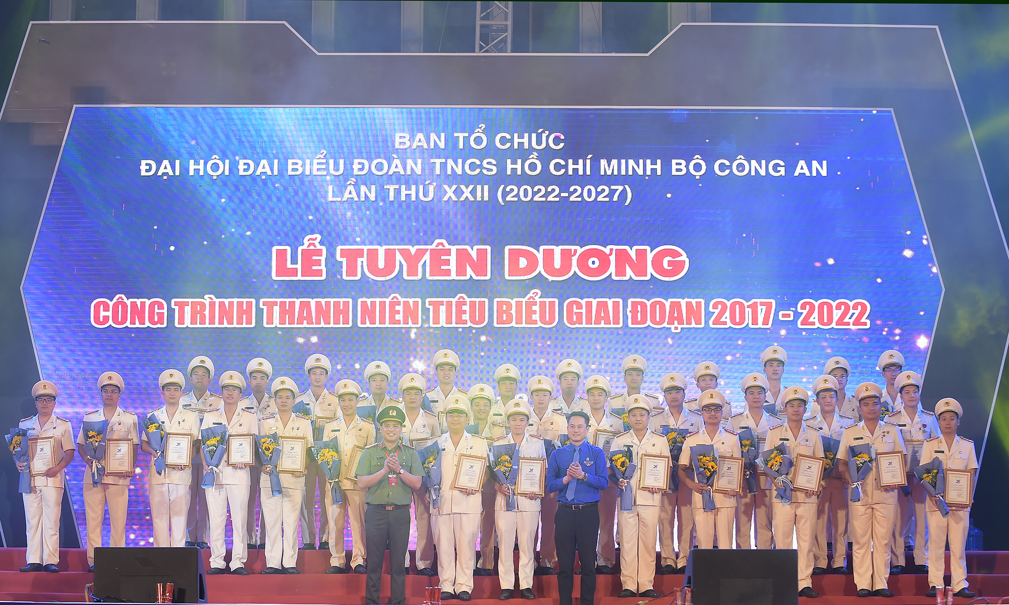 Tối 17-10 tại Hà Nội, ban tổ chức Đại hội đại biểu Đoàn TNCS Hồ Chí Minh Bộ Công an lần thứ XXII tổ chức lễ tuyên dương, trao thưởng công trình thanh niên tiêu biểu giai đoạn 2017 - 2022 và liên hoan dân vũ "Sắc màu tuổi trẻ Công an nhân dân".