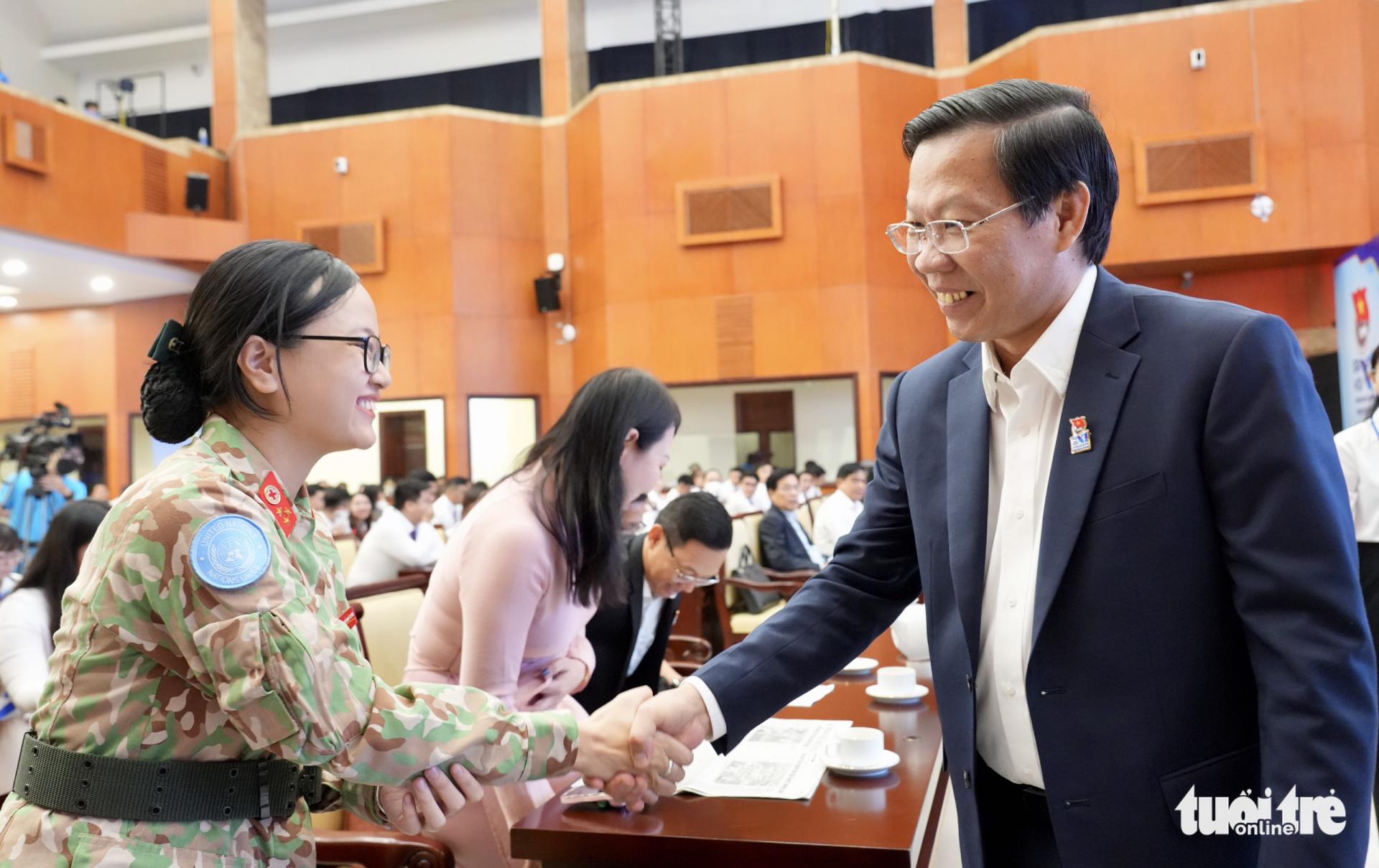 "Làm sao để Đoàn tham gia xây dựng nguồn nhân lực trẻ đóng góp vào phát triển. Tôi mong các bạn phải phát triển bản thân trước. Mỗi người phát triển là chúng ta đóng góp vào sự phát triển chung của thành phố" - ông chia sẻ.