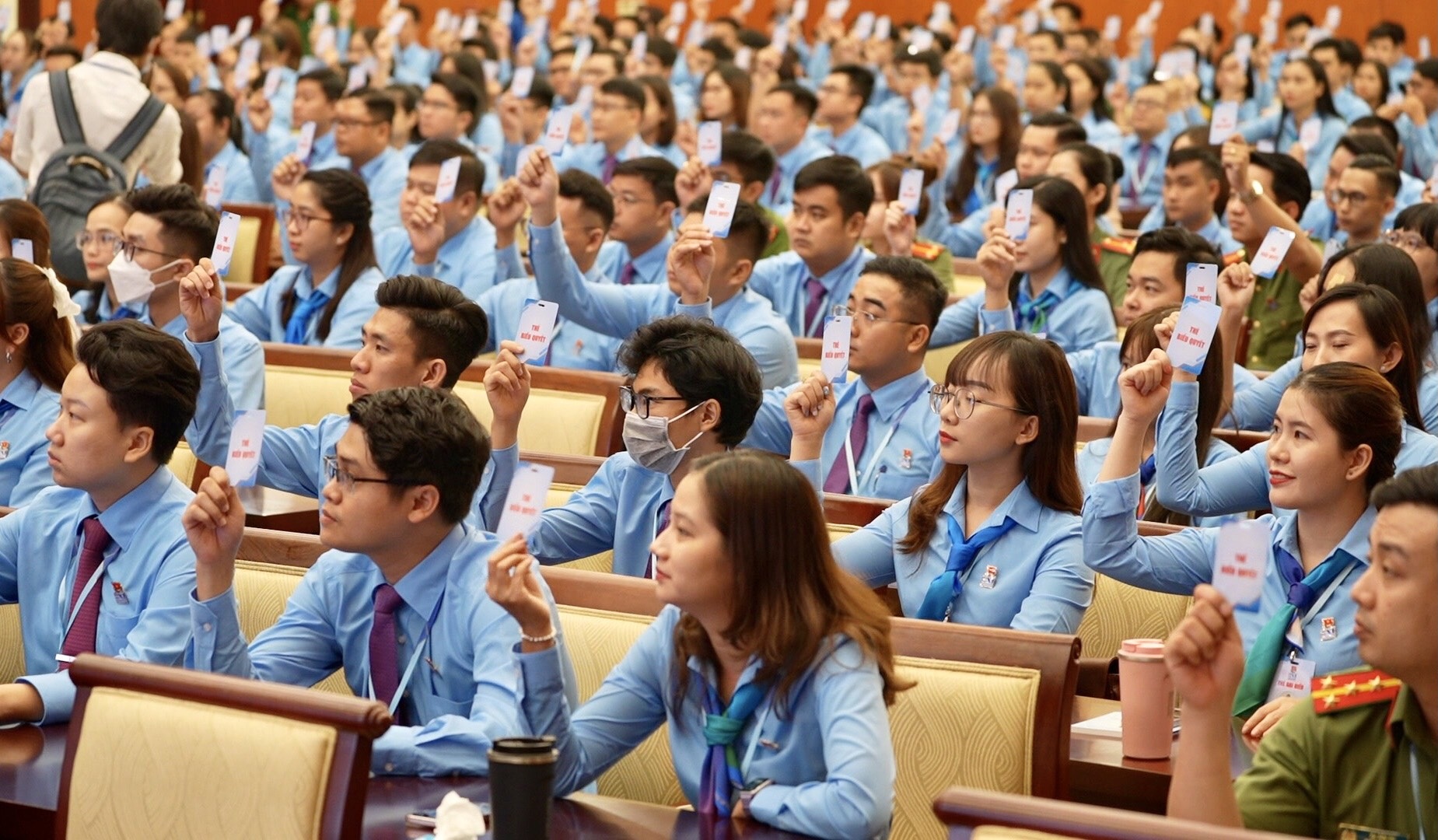 Đại biểu biểu quyết các nội dung, chương trình làm việc của đại hội - Ảnh: HỮU HẠNH