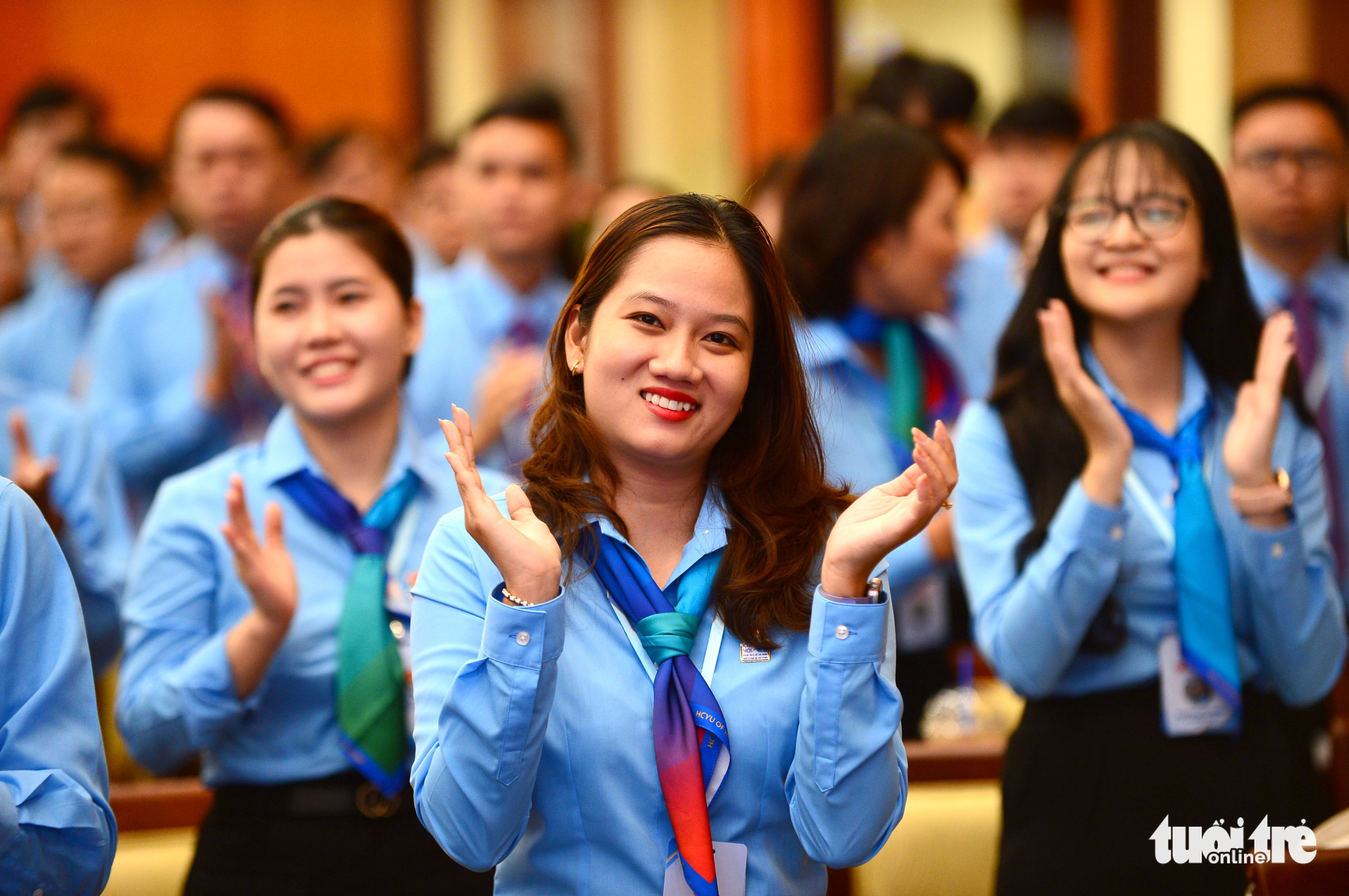 Các đại biểu tham dự Đại hội đại biểu Đoàn TNCS Hồ Chí Minh TP.HCM lần thứ XI sáng 15-10 - Ảnh: QUANG ĐỊNH