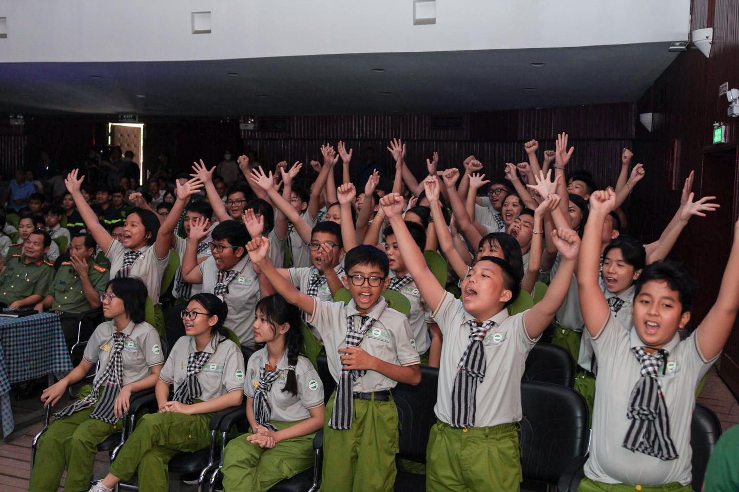 Đồng thời, chương trình đã tổ chức Lễ trưởng thành Học kỳ huấn luyện “Học làm chiến sĩ Công an”. Trải qua những ngày học tập, sinh hoạt trong quân ngũ, các em đã vượt qua mọi thử thách để chứng tỏ bản lĩnh, tinh thần kỷ luật và sự trưởng thành của mình. Những khoảnh khắc khó khăn và bài học quý báu đã giúp các em không chỉ phát triển về thể chất mà còn bồi đắp thêm ý chí, lòng kiên nhẫn và tinh thần đồng đội.