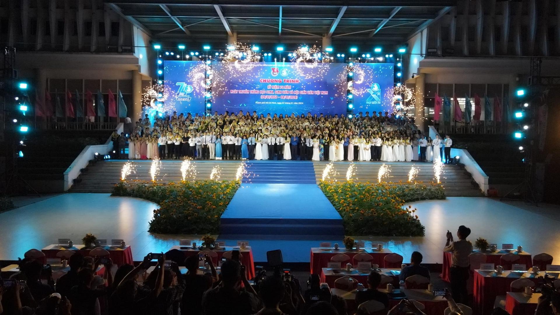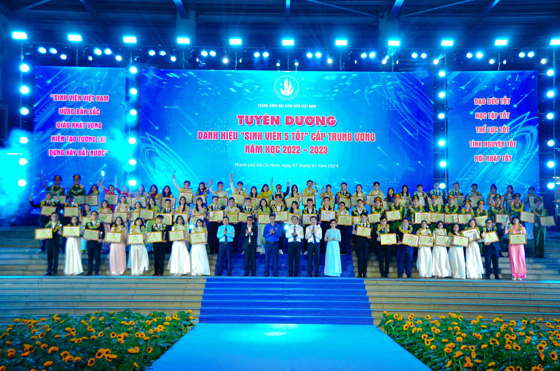 On the evening of January 7, at the Student Culture House in Ho Chi Minh City, the Central Secretariat of the Youth Union, the Central Secretariat of the Vietnamese Students’ Association. organized the 74th Anniversary of the Traditional Day of Vietnamese Students, College Student and Students Association (09/01/1950 - 09/01/2024), awarded the titles of “Student of 3 merits”,Well-rounded Student in 3 Aspects.", “Student of 5 merits” at the Central level of the academic year 2022 - 2023, awarding the Star of the January awards in 2023.