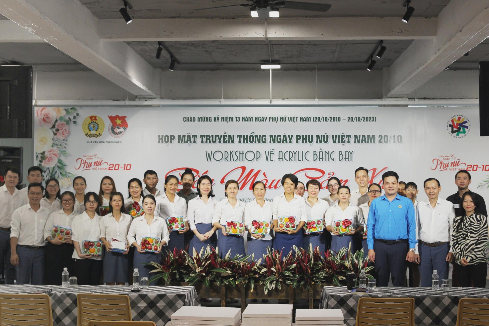 Sáng ngày 18/10/2023, tại Sảnh triển lãm - Nhà Văn hóa Thanh niên Ban chấp hành Công Đoàn Cơ sở thành viên Nhà Văn hóa Thanh niên phối hợp cùng Ban chấp hành Chi Đoàn và Học viện Nghệ thuật Thị giác đương đại Việt Nam tổ chức chương trình "Họp mặt truyền thống ngày phụ nữ Việt Nam 20/10" và "Workshop vẽ Arcylic bằng bay chủ đề "Sắc màu cảm xúc" dành cho cán bộ, viên chức, người lao động Nhà Văn hóa Thanh niên nhằm chào mừng kỷ niệm 93 năm ngày thành lập Hội Liên hiệp Phụ nữ Việt Nam (20/10/1930 - 20/10/2023) và 13 năm Ngày Phụ nữ Việt Nam (20/10/2010 - 20/10/2023).