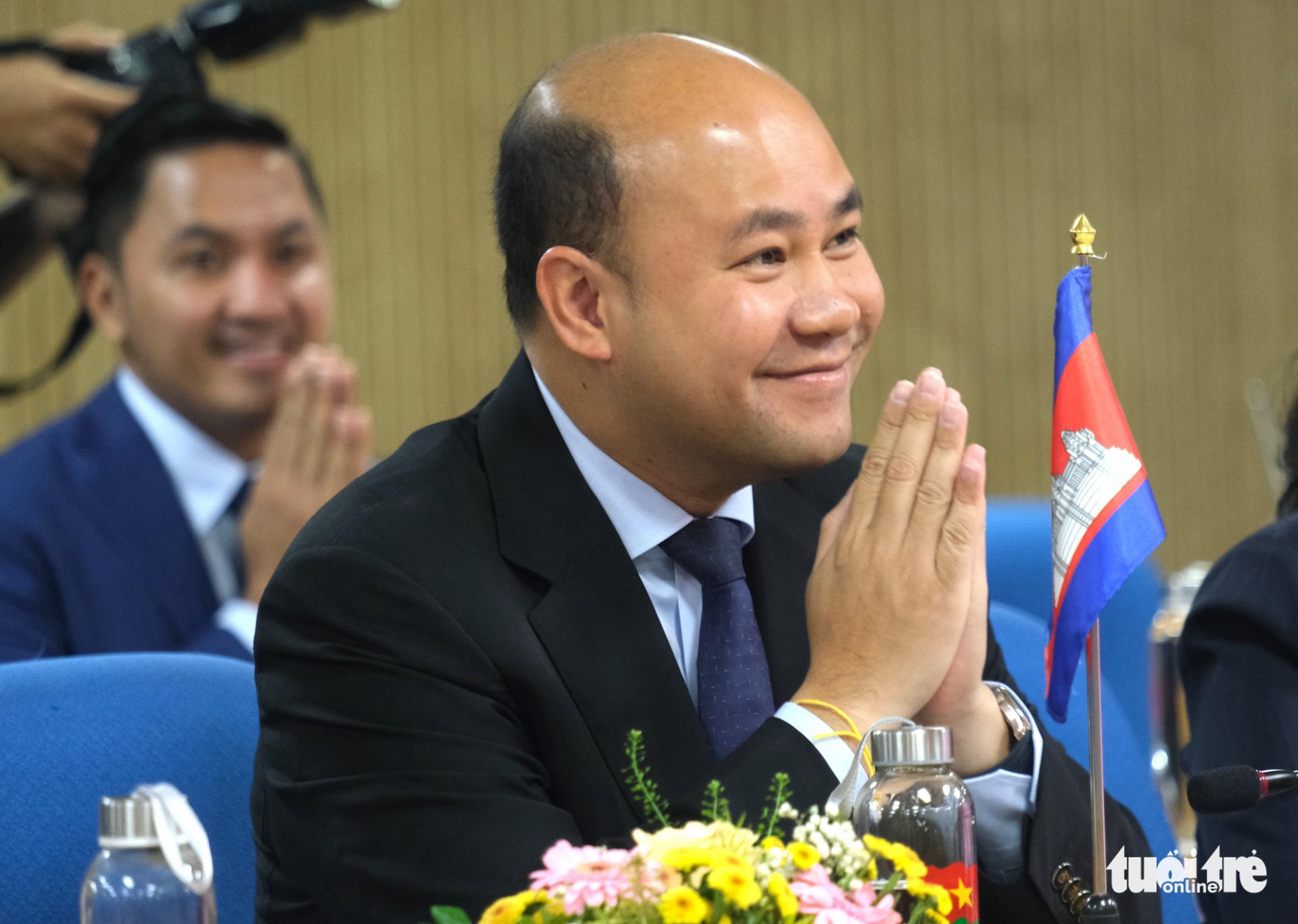 Anh Hun Many - chủ nhiệm Ủy ban Giáo dục, Thanh niên, Thể thao, Văn hóa, Tôn giáo và Du lịch của Quốc hội, chủ tịch Nhóm Nghị sĩ trẻ Campuchia, chủ tịch Hội Liên hiệp thanh niên Campuchia - đến Việt Nam - Ảnh: HÀ THANH