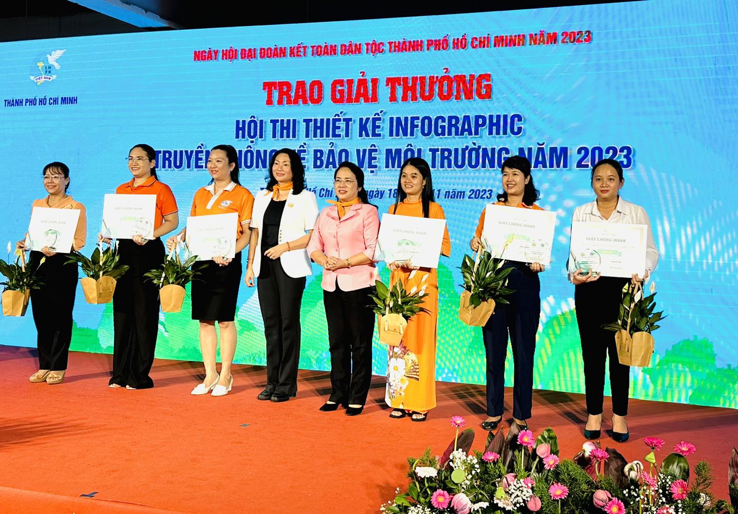 Bên cạnh đó, Hội LHPN TPHCM và Sở TNMT trao tặng Giấy chứng nhận Hội thi Thiết kế infographic truyền thông về bảo vệ môi trường cho 15 tập thể đạt giải thưởng; đồng thời phát động Cuộc thi Phụ nữ khởi nghiệp năm 2024 với chủ đề “Phụ nữ khởi nghiệp sáng tạo và chuyển đổi xanh”.